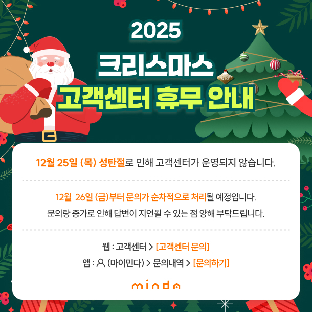 12/25 크리스마스 고객센터 휴무 안내