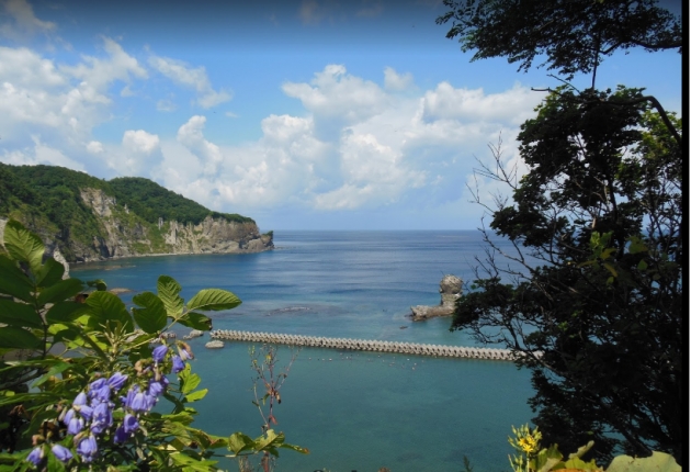반도의 끝부분에 위치한 카무이암석, 양쪽으로 서해의 웅대한 모습이 펼쳐지는 산책로를 30분 정도 걸어가면 주위 300도의 둥근 수평선을 볼 수 있습니다.