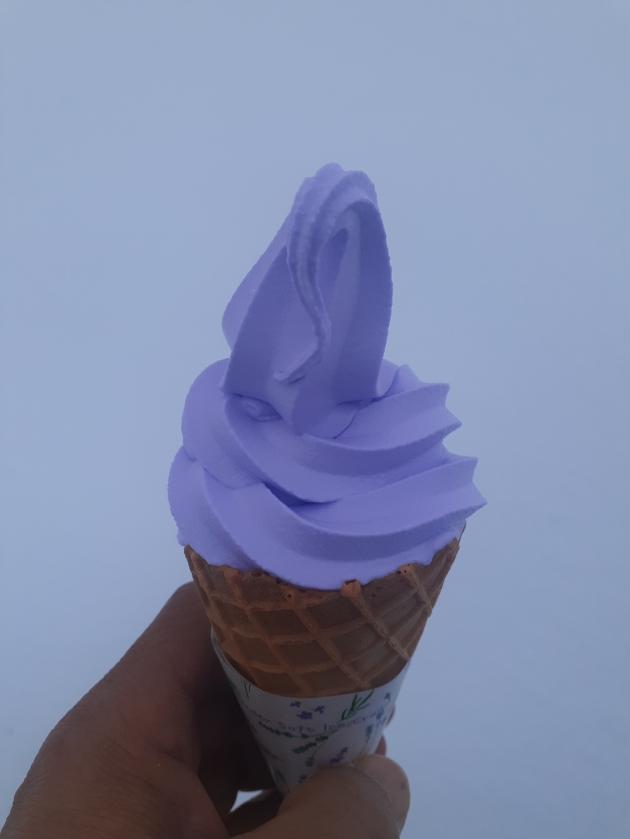 - 예쁘고 맛있는 라벤다아이스크림(예쁜 보라색아이스크림을 새파란 하늘과 하얀 눈 그리고 라벤다색 예쁜 우체통을 배경으로 사진을 찍은후 드세요)