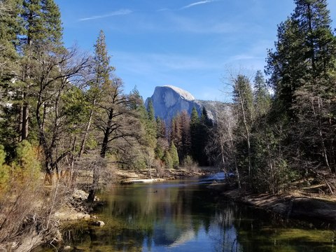 거대한 빙하가 빚어낸 요세미티 밸리에는 세계에서 가장 높은 화강암 절벽으로 이루어진 엘캐피탄을 비롯해 바가지 모양의 하프돔은 전 세계 암벽 등반인들의 성지로 불립니다