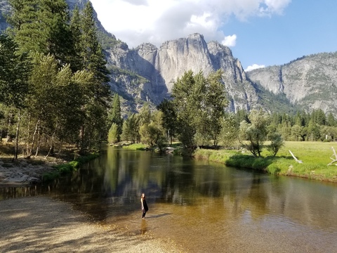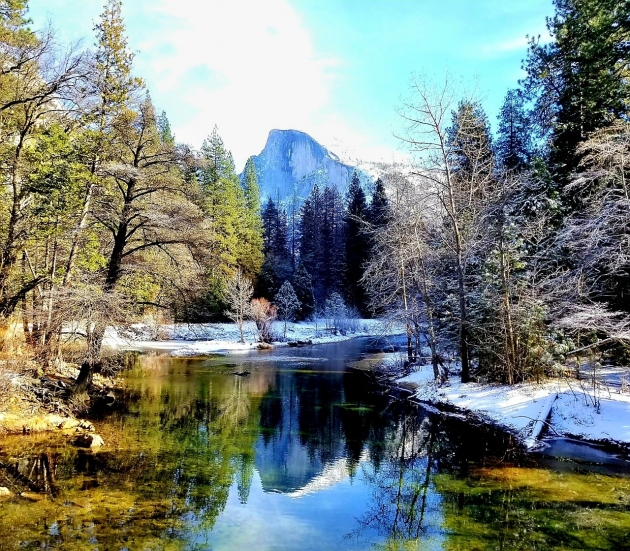 요세미티 사진중에 가장 많이 등장 하는곳 중 하나로 강 너머로 보이는 앨캐피탄과 주변 산봉우리 들이 너무 아름다워 관광객들에게 사랑 받는 뷰포인트중 하나 입니다.
