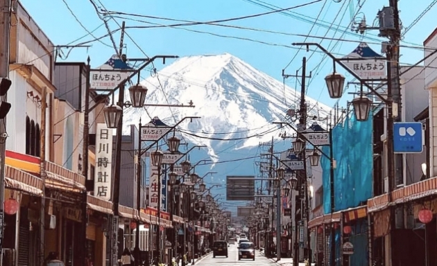 에도시대의 후지강(신앙으로서의 후지산 등산)을 위한 숙박시설이 들어선 후지미치, 현재의 국도 139호에 서서 후지요시다의 중심·심벌이기도 한 토리이.