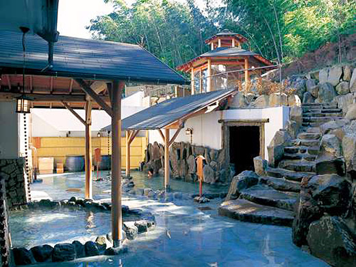 대욕탕에는 온도차를 둔 월풀욕조, 목욕물, 원천 미지근한 물 등을 배치한 3개의 욕조와 드라이와 미스트 등 2개의 사우나가 있으며 넓은 부지에는 돌과 편백나무, 두 개의 지붕 달린 노천탕이 있고, 노천탕과 대욕탕에서 후지산을 바라볼 수 있습니다.