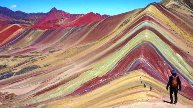다시 차량 이동합니다. 이곳에서 트레킹을 시작하여 약 1시간 반 후, 비니쿤카 무지개산에 도착합니다. 휴식과 사진 촬영 등 자유시간을